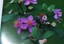 桃金娘 Hassk.),桃金娘科,桃金娘属灌木植物,其高可达2米;幼枝密被柔毛;叶对生,椭圆形或倒卵形;花有长梗,常单生,紫红色,花药圆形;果为浆果,卵状壶形,熟时紫黑色;花期4、5月,…全部>>