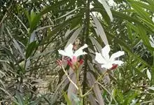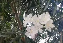 白花夹竹桃是夹竹桃科、夹竹桃属植物夹竹桃的栽培品种。常绿直立大灌木,枝条灰绿色;嫩枝条具稜,被微毛,老时毛脱落。叶3-4枚轮生,下枝为对生,叶面深绿,叶背浅绿色;侧脉纤细平行与中脉成直角;叶柄扁平,…全部>>