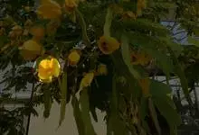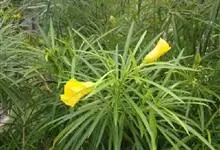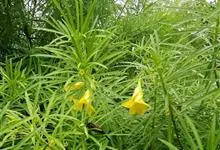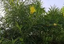 黄花夹竹桃K. Schum.),又名“酒杯花”“柳木子”“黄花状元竹”,是夹竹桃科,黄花夹竹桃属下的常绿乔木植物。高达5m,全株无毛,树皮棕褐色;叶互生,近革质,线形或线状披针形;花大,黄色,具香味,…全部>>