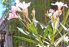 夹竹桃,又名红花夹竹桃、欧洲夹竹桃,是夹竹桃科夹竹桃属的一种常绿直立大灌木,枝条灰绿色,含水液。叶披针形,3叶轮生。聚伞花序顶生,花冠粉红至深红色,花冠漏斗状,有特殊香味。蓇葖果,圆柱形。种子长圆形,…全部>>