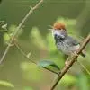 黑喉缝叶莺:体长11.5厘米,是一种小型的顶冠棕色、腹部白色的莺。尾甚长而常上翘,臀黄色,具特征性的偏黑色喉,上体橄榄绿色,头侧灰色。雌鸟色暗,头少红色且喉少黑色。与长尾缝叶莺的区别在后顶冠亦为棕色,…全部>>