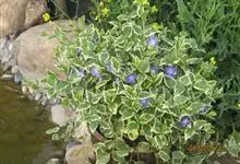 花叶蔓长春花是夹竹桃科、蔓长春花属、蔓长春花的栽培品种。蔓性半灌木,茎偃卧,花茎直立;除叶缘、叶柄、花萼及花冠喉部有毛外,其余均无毛。叶椭圆形,边缘白色,有黄白色斑点,长2-6厘米,宽1.5-4厘米,…全部>>