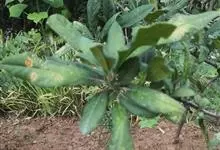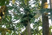 番木瓜,番木瓜科番木瓜属的常绿软木质小乔木,高达10米,具有乳汁;茎不分枝或有时于损伤处分枝;叶大且聚生于茎顶,近似盾形,叶柄中空;花单性或两性,有些品种雄株偶尔生两性花或雌花,…全部>>