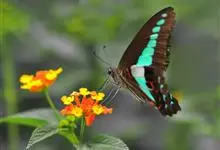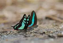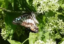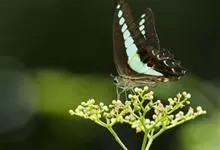 青带凤蝶Graphium sarpedon ,又名青凤蝶,是最普遍的中型凤蝶,飞行速度很快。青带凤蝶的翅膀中央有许多浅蓝色的斑点,很整齐地排列成一条直线。这些斑点由上而下逐渐变大,就像一条青色的带子。全部>>
