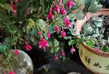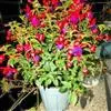 倒挂金钟是柳叶菜科倒挂金钟属亚灌木植物。茎直立,多分枝;幼枝带红色,被短柔毛与腺毛,老时渐无毛;叶对生,卵形或窄卵形,脉常带红色;常带红色,被短柔毛与腺毛;花筒红色,筒状钟形,…全部>>