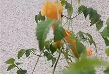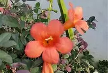 凌霄 Schum.),别名上树龙、五爪龙、九龙下海等,为紫葳科凌霄属的攀援藤本植物。其茎木质,以气生根攀附于它物之上。叶对生,为奇数羽状复叶;小叶卵形至卵状披针形,边缘有粗锯齿;顶生疏散的短圆锥花序,…全部>>