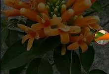 炮仗藤 Miers)紫葳科炮仗藤属藤本植物。小枝顶端有丝状卷须;叶对生,卵形;花萼钟状,橙红色,长椭圆形,花丝丝状,花药叉开;果瓣为革质,舟状。花期1-6月。初夏红橙色的花朵累累成串,状如鞭炮,…全部>>
