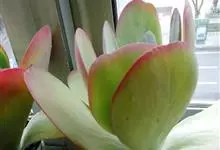 唐印为景天科伽蓝菜属的多年生肉质草本植物。植株中型,株高50厘米,宽20厘米,多分枝;叶片肉质,对生,卵形,全缘,先端钝圆,叶片淡绿色至灰绿色,表面被有厚厚的白粉,光照充足时,叶缘呈红色;圆锥花序,…全部>>