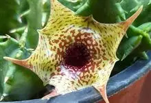 豹皮花 L. C. Leach)是夹竹桃科、豹皮花属植物。肉质植物,茎亮绿色,几株簇生在一起,高约10厘米,状似仙人掌,四棱,棱稍钝,棱具粗厚软刺,光滑,绿色。无叶。…全部>>