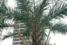 加那利海枣是棕榈科刺葵属植物,单干直立,自然高度可达18米,干径50-90厘米,幼时被以枯叶,老树则叶柄基部残存。具波状叶痕,羽状复叶,顶生丛出。雌雄异株,肉穗花序自叶间抽出,长可达2米。浆果,…全部>>