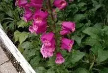 毛地黄是车前科、毛地黄属一年生或多年生草本植物。株高0.5—1米,茎直立,少分枝,全株被灰白色短柔毛和腺毛叶基生,呈莲座状,卵圆形或卵状披针形。顶生总状花序,花冠钟状,紫红色,内面有浅白斑点。菊果卵形。…全部>>