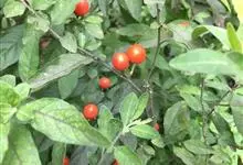 冬珊瑚,现名珊瑚豆 Bitter)。直立小灌木,多分枝成丛生状,作1-2年生栽培。株高30-60厘米。叶互生,狭长圆形至倒披针形。夏秋开花,花小,白色,腋生。浆果,深橙红色,圆球形,直径1-1.5厘…全部>>