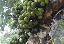 大果榕是桑科榕属的小乔木,株高可达10米;幼枝被柔毛;叶互生,宽卵状心形或近圆形;雄花无梗、匙形、花丝长,雌花生于雌株榕果内,子房白色;榕果簇生于树干基部或老茎短枝上、扁球形或陀螺形,…全部>>