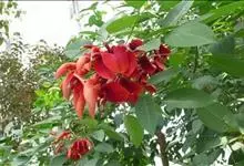 鹦哥花是豆科刺桐属植物,小乔木或乔木。树干和枝条具皮刺。羽状复叶,叶柄平滑,顶生小叶近肾形,侧生小叶斜宽心形,两面无毛。总状花序生于先端叶腋,花鲜红色,大,具花梗,苞片单生,卵形,花萼陀螺形,花冠红…全部>>