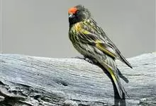 金额丝雀:为雀科丝雀属的鸟类。体重10-14克,体长109-131毫米。是一种体型较小的褐色斑驳的雀鸟。头近黑,额至顶冠有鲜红色块斑。雄雌同色,体羽在繁殖期更为亮丽。幼鸟似成鸟但头色较淡,…全部>>