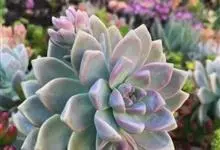 紫珍珠是景天科石莲花属的多年生肉质草本植物。植株中小型;叶片肉质,匙形,呈莲座状紧密排列;叶片粉紫色,叶缘呈粉白色,光照充足时颜色亮丽,不足时叶色会呈现深绿色或灰绿色,叶面光滑,被轻微白粉,…全部>>
