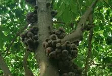 大果榕是桑科榕属的小乔木,株高可达10米;幼枝被柔毛;叶互生,宽卵状心形或近圆形;雄花无梗、匙形、花丝长,雌花生于雌株榕果内,子房白色;榕果簇生于树干基部或老茎短枝上、扁球形或陀螺形,…全部>>