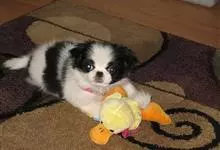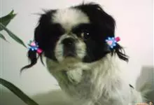 日本狆是极小型犬;被毛长而丰厚,不弯曲;毛色为白色底,带黑色或栗色斑块,斑块颜色越艳越好;斑块以在耳、身、面、尾根左右对称者为佳;头较大而圆,头骨平坦;吻短,鼻尖缩至两眼之间,几乎与眼同齐;眼大而凸出,…全部>>