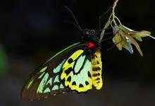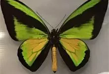 金裳凤蝶是凤蝶科、裳凤蝶属的动物。金裳凤蝶身体呈黑色,头、颈和胸侧有红毛,腹部有黑黄两色相间条纹,雄蝶前翅黑色,具黑天鹅绒光泽,各脉两侧灰白色,后翅金黄色,各室外缘有等腰三角形黑斑1枚,斑内侧有晕,…全部>>