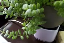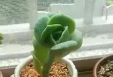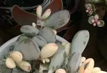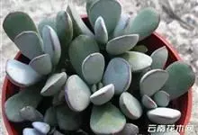 乒乓福娘,植株叶片退化成扁卵状,植株为直立的肉质灌木,能够长高。叶片对生,扁卵型至圆卵形,叶片顶端紫红圆叶尖,叶面有一层白粉。强光下叶片的顶端边缘会较红。初夏开花,聚伞状圆锥花序,花序较高,小花管状…全部>>