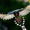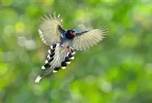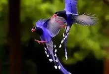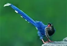 台湾蓝鹊:体长64至65厘米,翼展18至21厘米,尾长约40厘米,尾羽长占了总体长的三分之二。头、脸、颈、喉、胸都是黑色,黄色的眼珠包围黑色的瞳孔,鲜红色的鸟喙、双脚,…全部>>