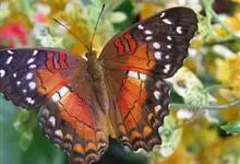 优红蛱蝶:翼展4.5-12厘米。是一种美丽的蝴蝶。色彩鲜艳,花纹相当复杂。前足相当退化,短小无爪。前翅R脉5条,常共柄。卵呈半圆球形。幼虫头上常有突起,体节上有枝刺,腹足趾钩1至3序中列式。蛹为垂蛹。全部>>