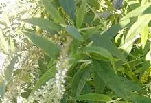 白背枫,马钱科醉鱼草属植物,常绿小灌木,高1-1.5米。嫩枝条四棱形,老枝条圆柱形;叶对生狭椭圆形或披针形,绿色无毛;总状花序窄而长,花冠芳香白色或淡绿色;蒴果椭圆状;种子灰褐色;花期1-10月,…全部>>