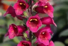 毛地黄是车前科、毛地黄属一年生或多年生草本植物。株高0.5—1米,茎直立,少分枝,全株被灰白色短柔毛和腺毛叶基生,呈莲座状,卵圆形或卵状披针形。顶生总状花序,花冠钟状,紫红色,内面有浅白斑点。菊果卵形。…全部>>