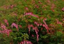 荷包牡丹 Fukuhara),是罂粟科荷包牡丹属的多年生草本植物,株高30-60厘米,具肉质根状茎;茎直立呈圆柱形;叶二回三出全裂,状似牡丹叶;总状花序顶生,基部为心形,花瓣紫红色至粉红色,稀白色,…全部>>