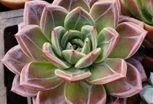 紫珍珠是景天科石莲花属的多年生肉质草本植物。植株中小型;叶片肉质,匙形,呈莲座状紧密排列;叶片粉紫色,叶缘呈粉白色,光照充足时颜色亮丽,不足时叶色会呈现深绿色或灰绿色,叶面光滑,被轻微白粉,…全部>>
