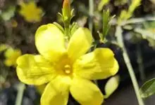 迎春花,木犀科素馨属的多年生木本植物,小枝细长直立或者呈拱形下垂;叶片呈卵形或椭圆形;花单生于叶腋处,苞片呈披针形或椭圆形,花冠为金黄色,花瓣通常为倒卵形或椭圆形;花期在6月。…全部>>