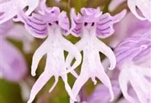 意大利红门兰,也称裸男兰、意大利男人兰,为兰科红门兰属的一种,植株高20-50厘米,花顶生,为发白的粉红色或紫色,花被片为头盔状,有暗色条纹,整朵花的造型就像一个戴着草帽的裸体男人。蒴果直立,…全部>>