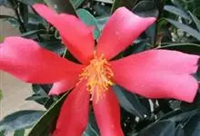 浙江红山茶是山茶科山茶属植物,小乔木,高6米,嫩枝无毛。叶革质,椭圆形或倒卵状椭圆形,长8-12厘米,宽2.5-5.5厘米。花红色,顶生或腋生单花,直径8-12厘米,无柄。蒴果卵球形,果宽5-7厘米…全部>>