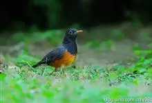 赤胸鸫是鸫科、鸫属中型鸟类,体长22-24厘米。整个头、颈和喉暗橄榄褐色或灰褐色,上体橄榄褐色。胸和两胁橙红色,腹以下白色。下嘴黄色,脚橙黄色具黄色眼圈。虹膜褐色,上嘴褐色,下嘴黄色,脚黄色。…全部>>