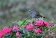棕胸蓝姬鹟:属小型鸣禽,体长10-13厘米,体重6-10克,是一种体型很小的灰蓝及棕色鹟,雌雄羽色不同,雄鸟羽色艳丽,雌鸟羽色暗淡。雄鸟上体深蓝色,胸橙黄色,下腹灰白色。亚成鸟具褐色斑驳。…全部>>