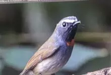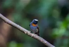 棕胸蓝姬鹟:属小型鸣禽,体长10-13厘米,体重6-10克,是一种体型很小的灰蓝及棕色鹟,雌雄羽色不同,雄鸟羽色艳丽,雌鸟羽色暗淡。雄鸟上体深蓝色,胸橙黄色,下腹灰白色。亚成鸟具褐色斑驳。…全部>>