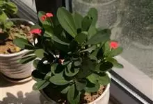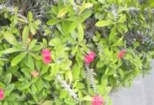 铁海棠为大戟科大戟属蔓生灌木植物;茎多分枝,具纵棱,呈旋转状;叶互生,通常集中于嫩枝上;每个花序基部边缘具微小的红色尖头;苞叶先端圆且具小尖头,无柄,上面鲜红色,下面淡红色;苞片丝状;子房光滑无毛,…全部>>