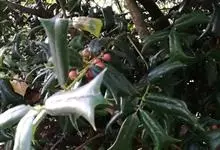 构骨叶冬青学名枸骨,又名猫儿刺、老虎刺、八角刺、鸟不宿、构骨、狗骨刺、猫儿香和老鼠树。常绿灌木或小乔木,高1-3米,二年枝褐色,三年生枝灰白色,叶片厚革质,花淡黄色,果球形,直径8-10毫米,成熟时…全部>>