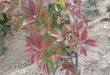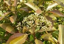 红叶石楠 是蔷薇科,石楠属杂交种,为常绿小乔木或灌木,乔木高可达5米、灌木高可达2米。叶片革质,长圆形至倒卵状、披针形,叶端渐尖,叶基楔形,叶缘有带腺的锯齿,花多而密,复伞房花序,花白色,梨果黄红色,…全部>>