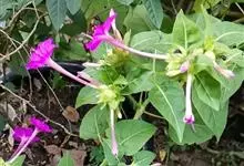 即紫茉莉,英文名:Four-o'clock,Marvel of Peru,为紫茉莉科、紫茉莉属多年生草本植物,一年生栽培。株高50~80cm。根粗壮,茎多分枝而散生。叶对生,卵形或心脏形。花数朵簇生…全部>>
