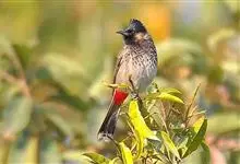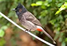 黑喉红臀鹎是雀形目鹎科鹎属鸟类,别称有黑头公、红臀鹎。头顶黑色具光泽;后颈、肩和背暗褐具灰色狭缘;腰羽几纯暗褐,尾上覆羽近白色,羽端浅灰褐色;尾羽褐黑,中央尾羽具狭窄的白色端斑,…全部>>