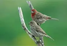 普通朱雀是雀形目雀科朱雀属鸟类,又名红朱雀、马料、青麻料。雄鸟上体红色,下体淡红色;头部、喉部、胸部及腰部亮红色;背部褐色染红色;两翼及尾黑褐色,羽缘染红色。雌鸟上体橄榄褐色,下体近白色,…全部>>