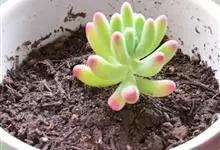 乙女心是景天科景天属的多肉植物,原产墨西哥。多年生亚灌木,茎叶肉质,株高5-30厘米。叶片簇生于茎顶,圆柱状,淡绿色或淡灰蓝色,叶先端具红色,叶长3~4厘米。花小,黄色。春秋为生长季,…全部>>