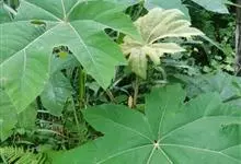 通脱木 K. Koch)是五加科通脱木属的常绿灌木或小乔木,茎干粗壮,叶片宽大,基部为倒卵状长圆形或卵状长圆形,边缘全缘或疏生粗齿,侧脉和网脉不明显;叶柄粗壮,密生白色或淡棕色星状绒毛;花淡黄白色,…全部>>