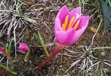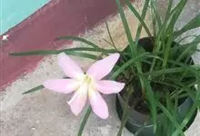 小韭兰学名韭菜莲又名风雨花、菖蒲莲、红玉帘和旱水仙,多年生草本,鳞茎卵球形,基生叶常数枚簇生,线形,扁平,花单生于花茎顶端,下有佛焰苞状总苞,花玫瑰红色或粉红色,蒴果近球形,种子黑色,花期夏秋。韭莲…全部>>