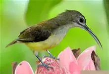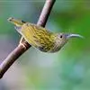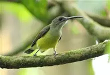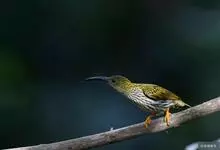 纹背捕蛛鸟:为太阳鸟科捕蛛鸟属的鸟类。是太阳鸟科中体型较大的一种,体重25-45克,体长160-210毫米。嘴粗长而尖且向下弯曲。上体橄榄黄色具黑色中央斑纹。下体淡黄白色满布黑色纵纹,尾具黑色次端斑。…全部>>