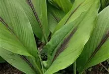 郁金是姜科、姜黄属植物。植株高约1米;根茎肉质,椭圆形或长椭圆形,内部黄色,芳香;根端紡锤状。叶基生,叶片长圆形,长30-60厘米,宽10-20厘米。花葶单独由根茎抽出,与叶同时发出或先叶而出,…全部>>