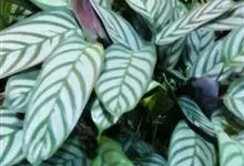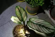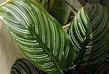 孔雀竹芋:竹芋科,肖竹芋属多年生常绿草本植物。植株挺拔株高可达60厘米。叶柄紫红色, 叶片薄革质,卵状椭圆形,叶面上有墨绿与白色或淡黄相间的羽状斑纹,就像孔雀尾羽毛上的图案,因而得名。…全部>>