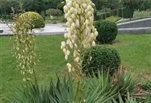 丝兰是天门冬科丝兰属植物。茎短或无茎;圆锥花序烛台状,花朵杯形,下垂,白色;叶基部呈剑形放射状,被白粉,革质;花期8—10月。丝兰原产于北美,在中国长江流域一带和华北地区均有栽培,长江以南地区也有分布。…全部>>