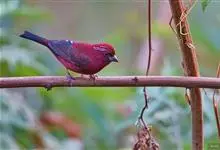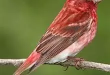 酒红朱雀小型鸟类,体长13~15厘米。雄鸟通体深红色,头部深朱红或棕红色,下背和腰玫瑰红色,眉纹粉红色而具丝绢光泽。两翅和尾黑褐或灰褐色、具暗红色狭缘,内侧两枚三级飞羽具淡粉红色先端。…全部>>